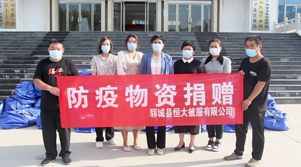 2022年8月31日,郓城县恒大被服有限公司通过县红十字会,为抗疫人员捐赠了200套被服物资,以实际行动践行社会责任担当,用真情和爱心传递社会正能量,助力郓城疫情防控。